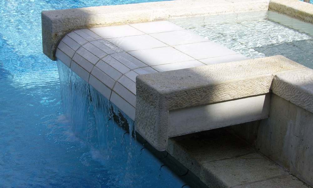 Spillover waterfalls raised above the pool, representing as a sort of basic water feature as it spills or trickles into the swimming pool.